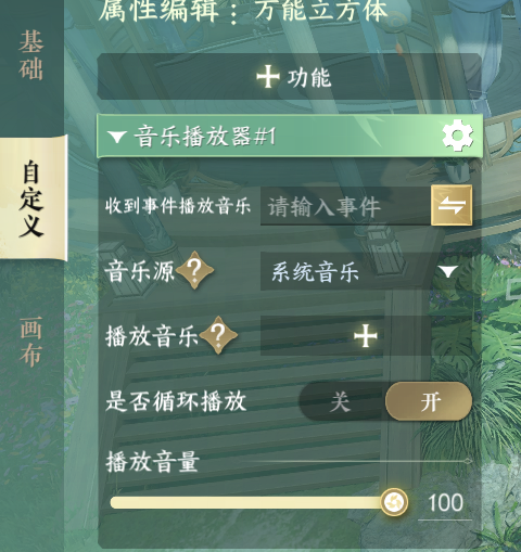 再比如,在“脚本编辑”的菜单栏中,你可以自由选取喜欢的音乐,并设置触发条件,随心所欲地为前来游玩的玩家编辑视听盛宴。