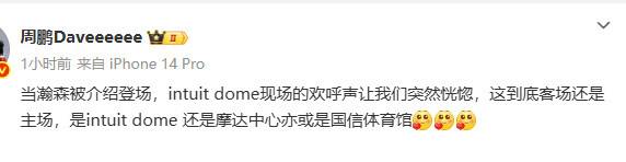 据在现场的球迷表示,洛杉矶快船主场涌现大量华裔和中国球迷,杨瀚森登场时引发热烈欢呼,罚球命中瞬间现场球迷高喊“MVP”助威。