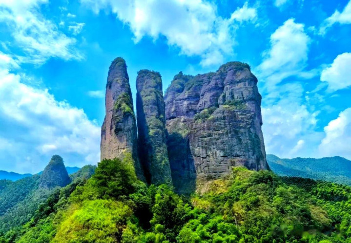 拥有中国丹霞第一奇峰"三爿石",展示了丹霞地貌垂直节理发育的典型特征。