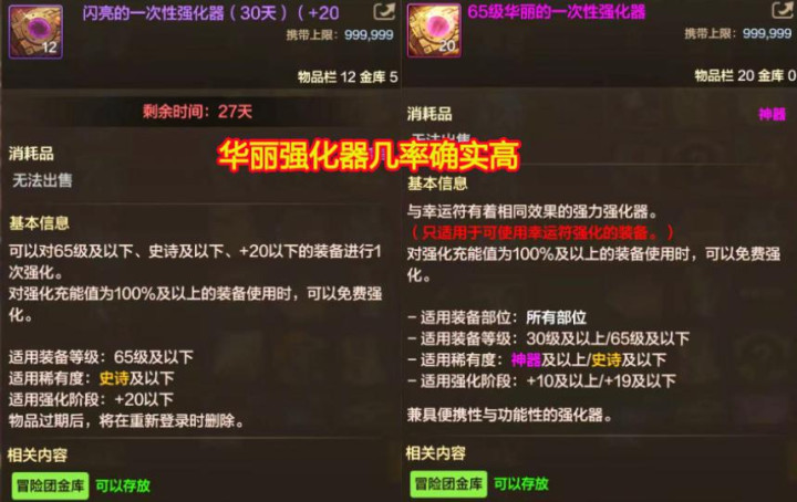 【1】全民+20几率大增。不要怀疑,这将是7月份之后的常态,一旦开始送华丽强化器,以后就按照这个标准了,70级发布会没说“提升成功率”,但送的道具2倍成功率,那也变相的强化减负。