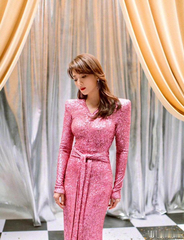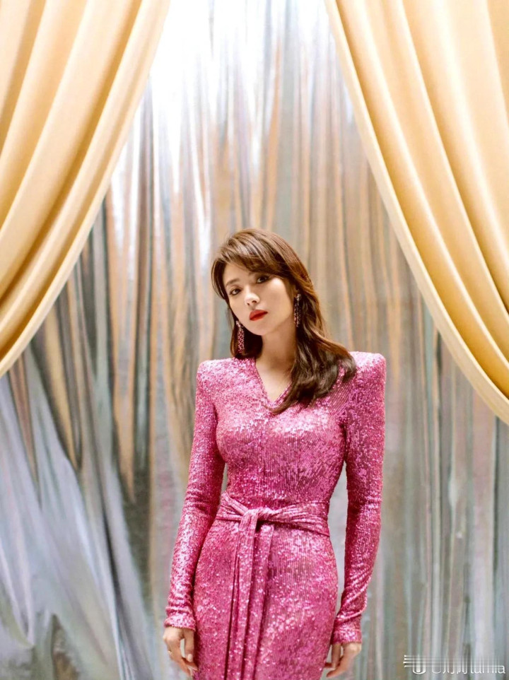 刘涛玫粉亮片裙,在华丽场景中释放优雅气场
