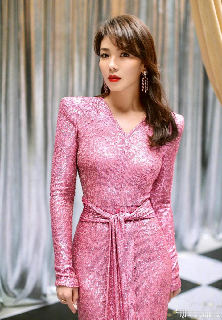刘涛玫粉亮片裙, 在华丽场景中释放优雅气场
